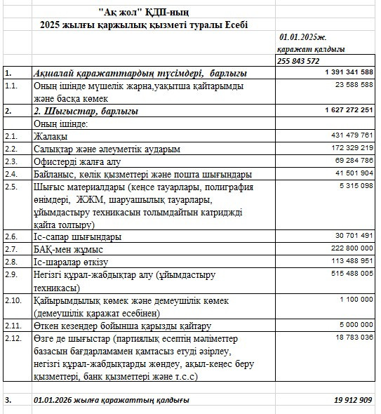 «Ақ жол» Демпартиясының 2025 жылғы қаржылық қызметі туралы есебі
