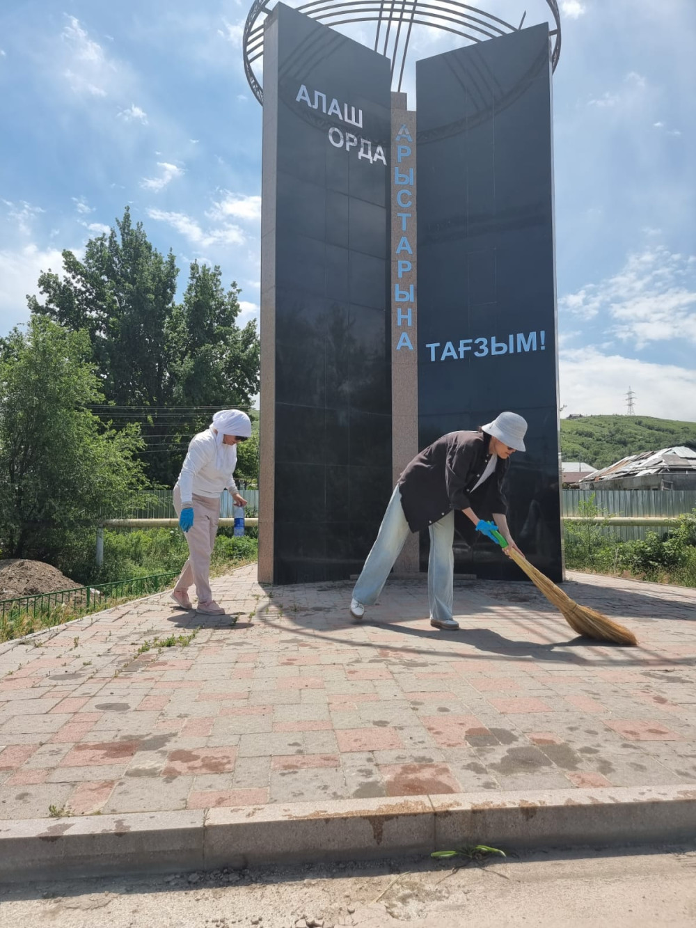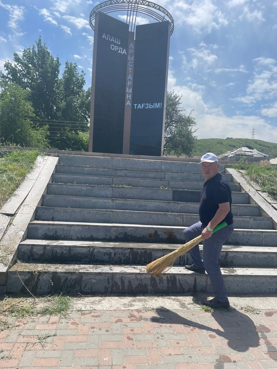 орналасқан «Алашқа тағзым» монументінің ауласына тазалық жұмыстарын жүргізуге