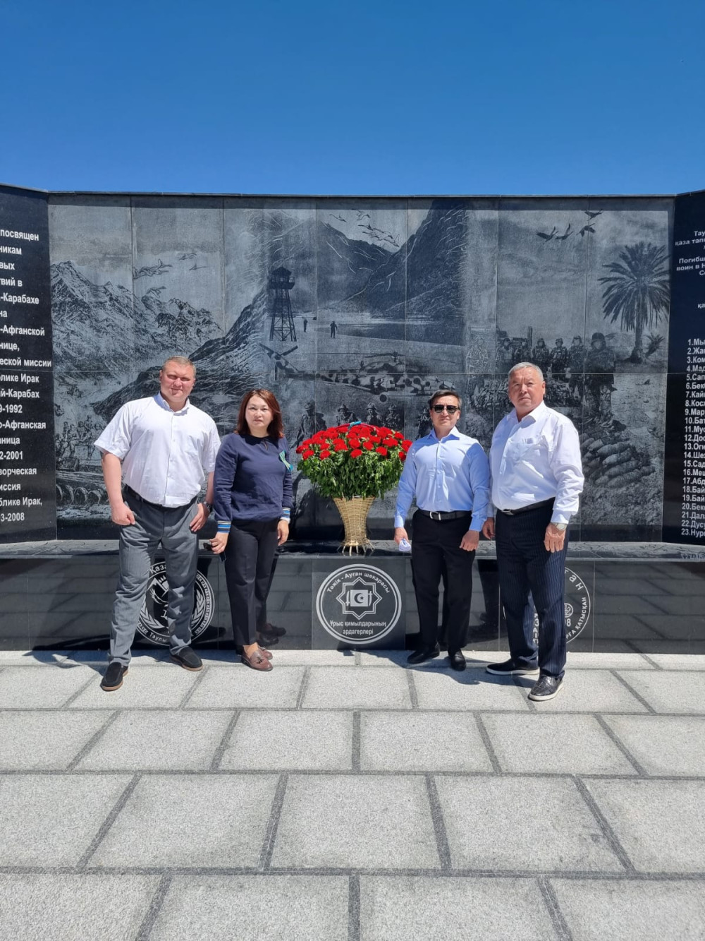 тағзым”монумент тақтаға гүл шоқтары қойылды. Бұл монументті қоюға қаржылай