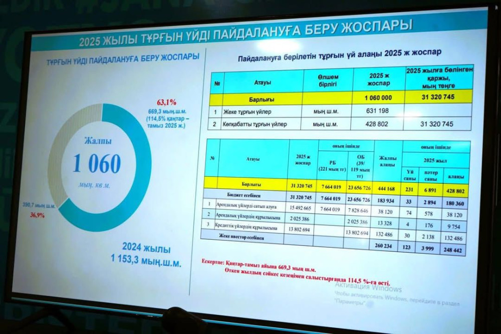 шаршы метр тұрғын үй пайдалануға беріледі. Оның ішінде: