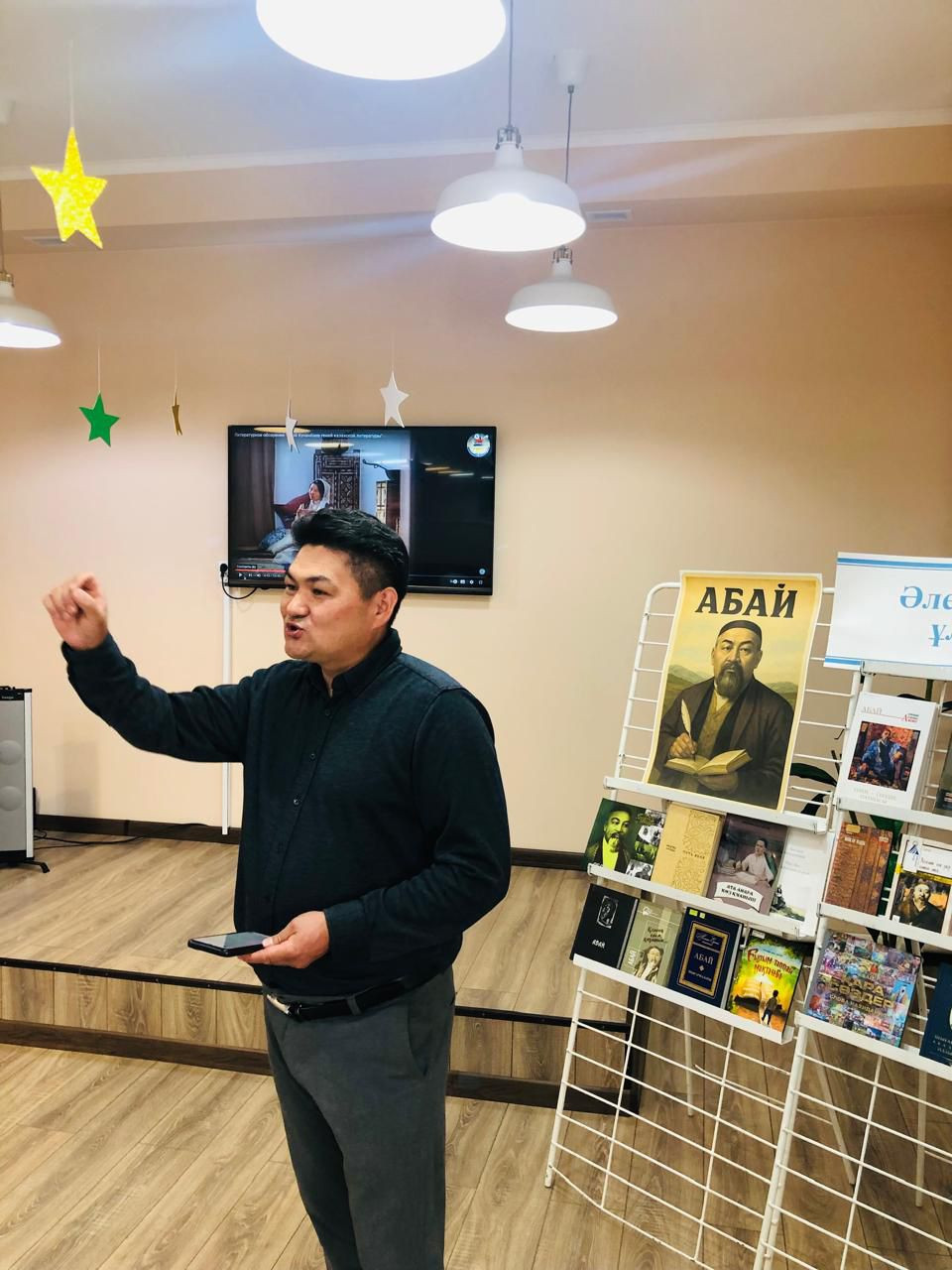 Ол «Абай – аудармашы» тақырыбында мазмұнды баяндама жасады. Абайдың орыс