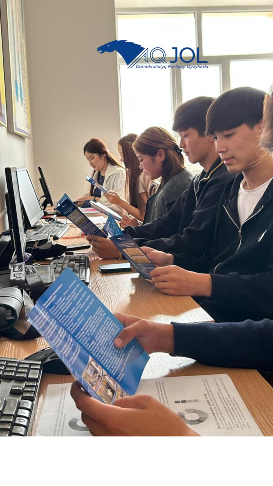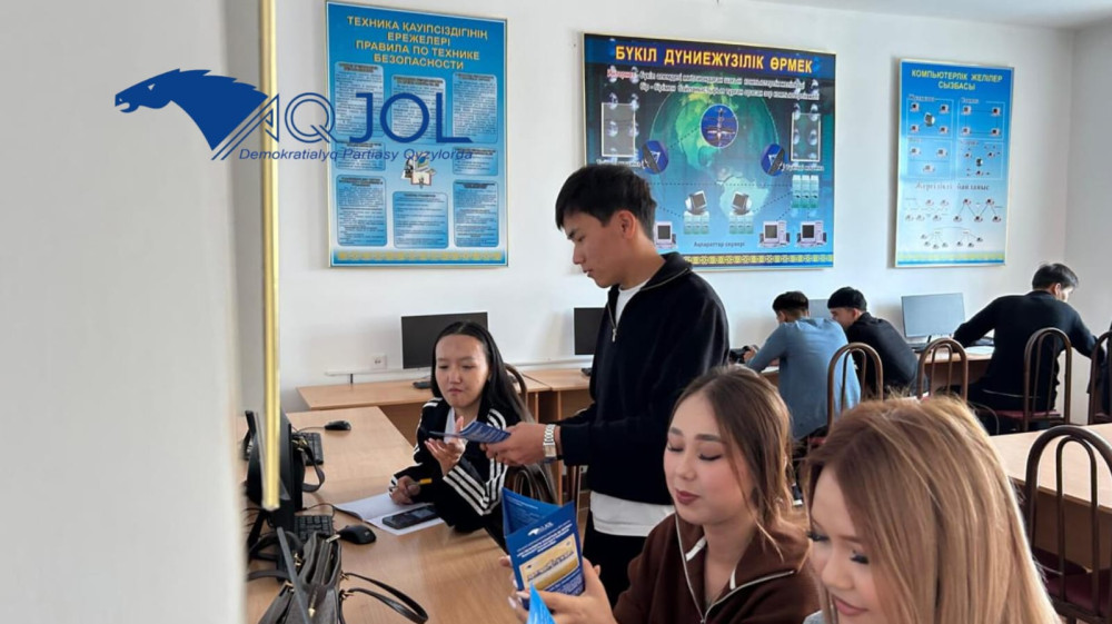 ғасырдағы Алаштың Ақ жолы" жалпыұлттық байқауын насихаттап, студенттерге байқау буклеттерін таратты.