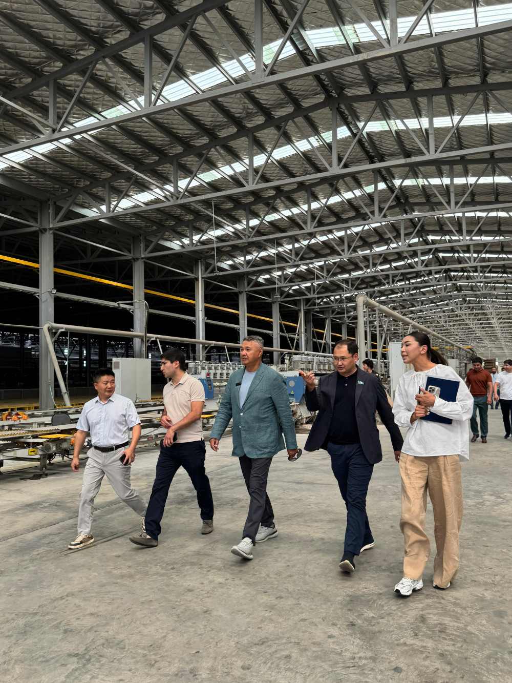 Мәжіліс депутаты Азат Перуашев зауытты аралап, өндіріс барысымен танысты.