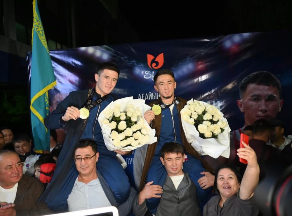 ағайынды Махмұд пен Төрехан Сабырхан Шымкентке оралды. Әуежайда чемпиондарды