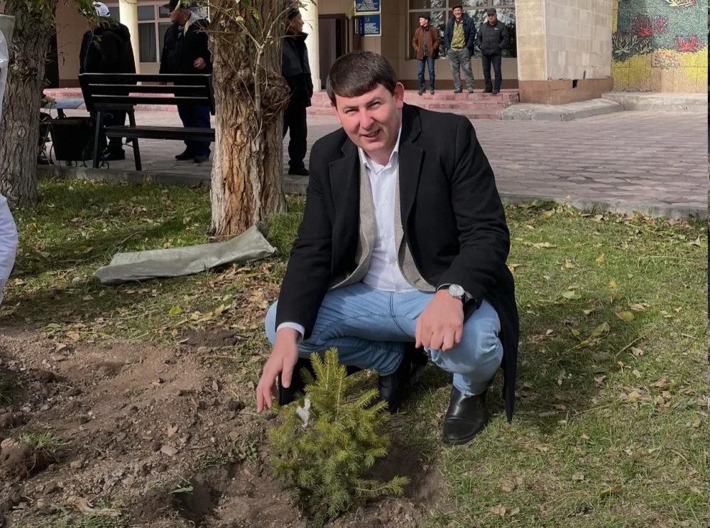 парк инспекторларымен бірге мерейтойлық оқиғаға орай балқарағай көшеттері