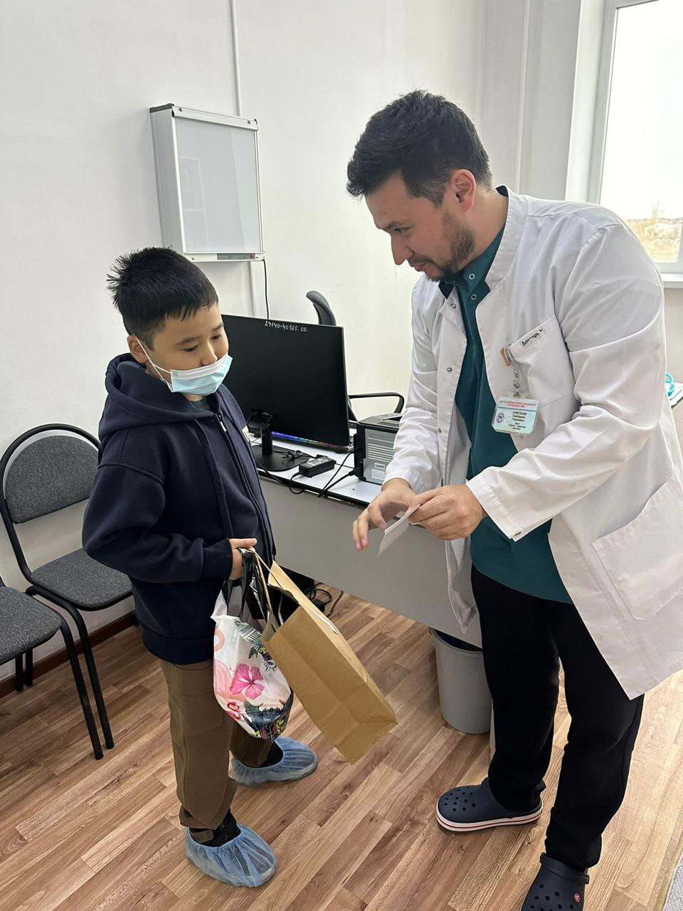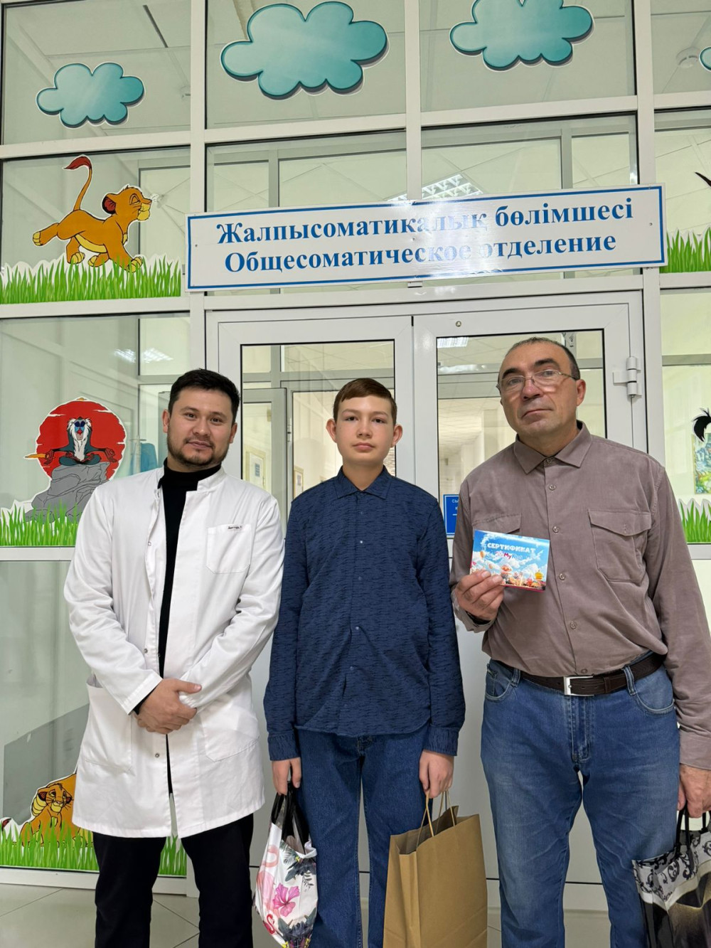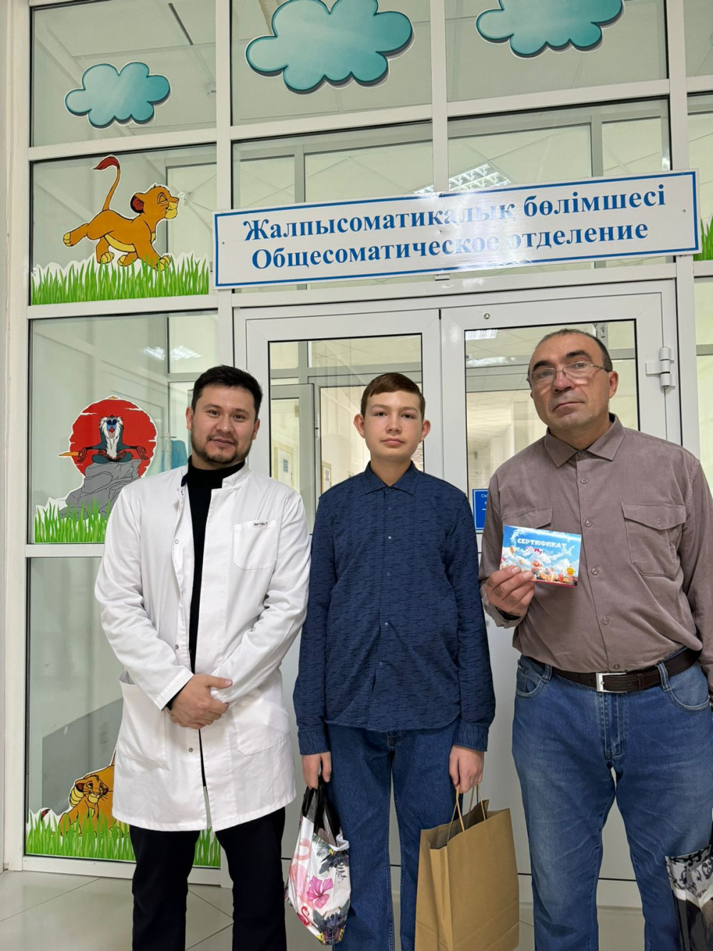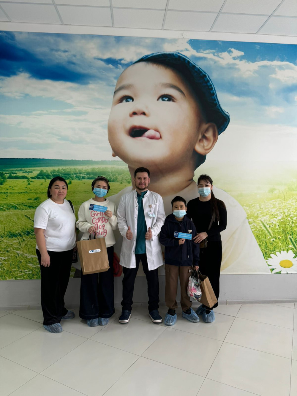 ауруханасына барып, ауыр дертке шалдыққан балаларға сыйлықтар табыстады.