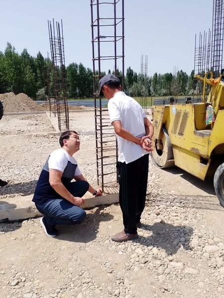 жатқан 150 орынды мәдениет үйінің құрылысының жұмысымен танысып, мердігерімен
