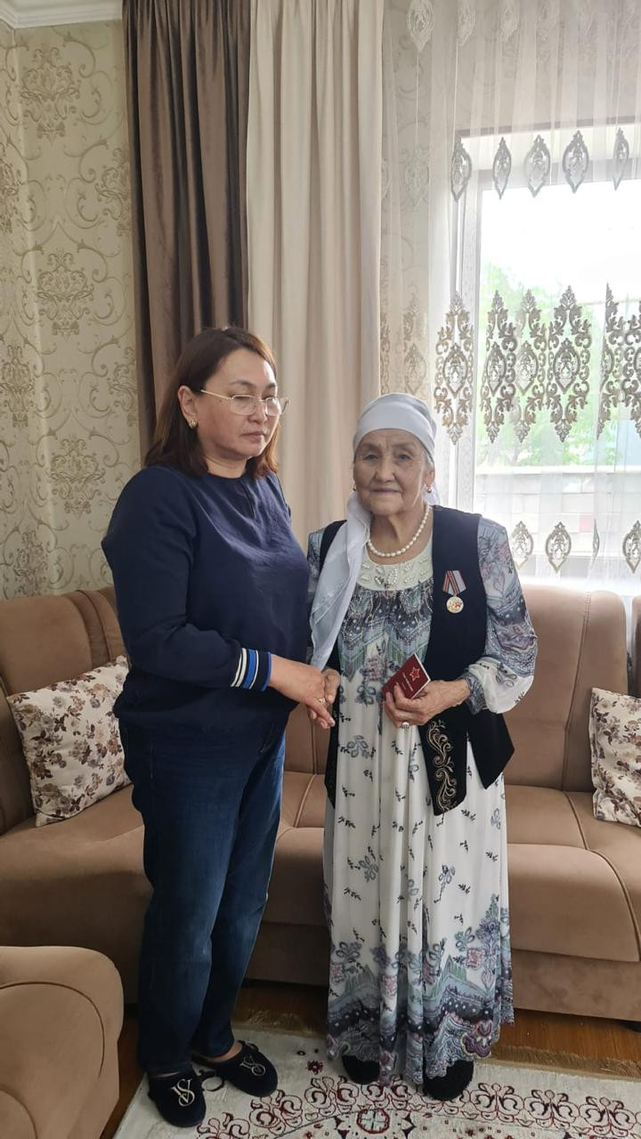 белгісімен Омарханова Света әжемізді марапаттадық. Төс белгіне апайымызға