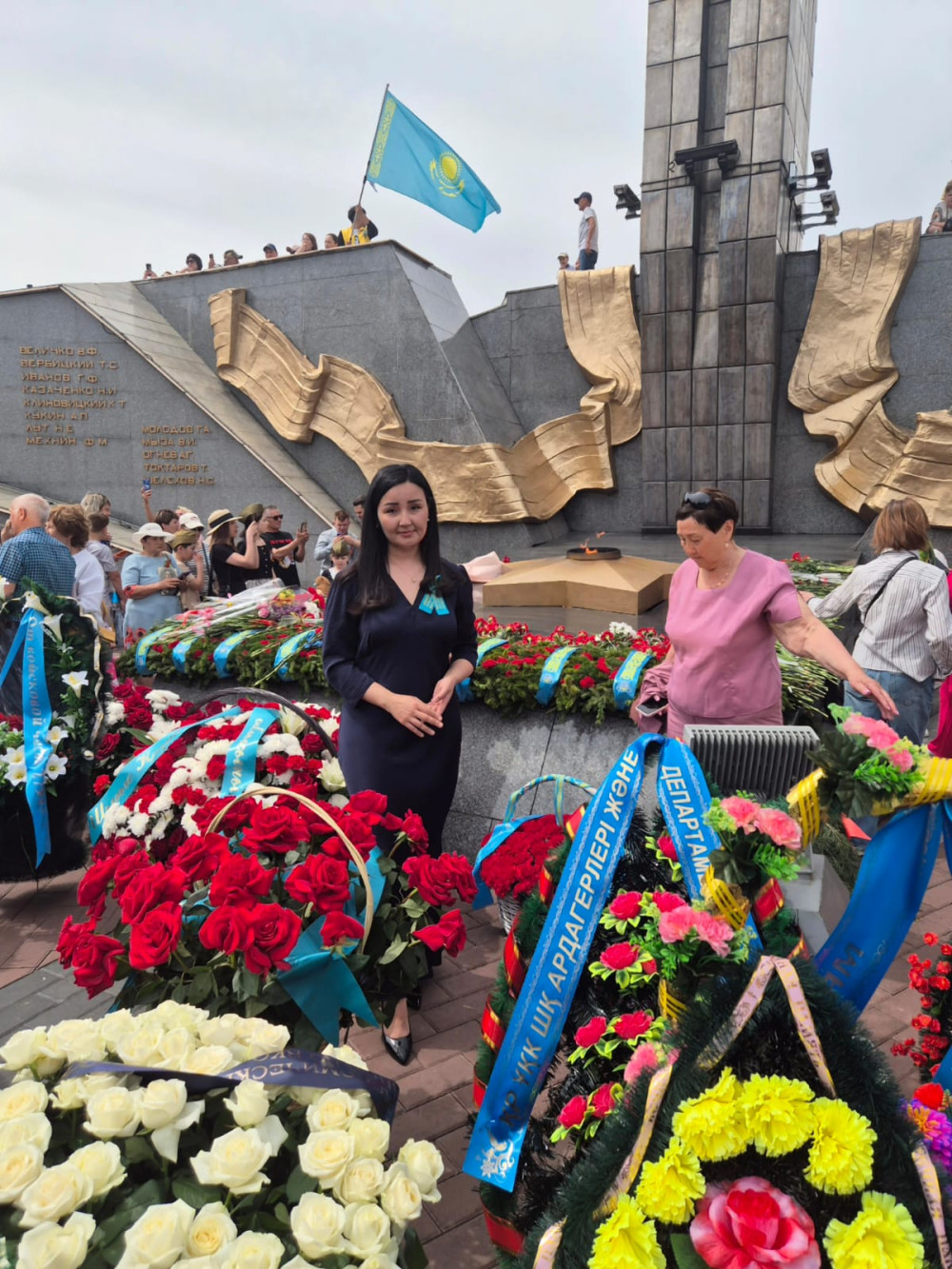мемориалында Мәңгілік алауға гүл шоқтарын қою рәсіміне қатысты.