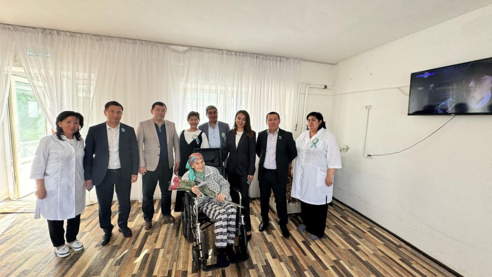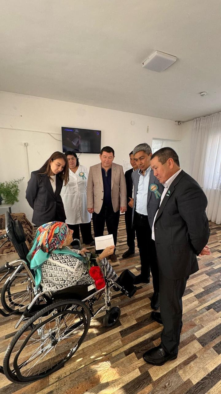 шоқтары мен сыйлықтар табыс етті. Қарттардың жай-күйімен танысып, әңгімелесті.