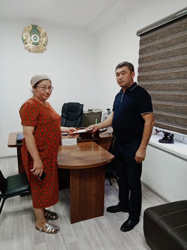 шеңберінде әлеуметтік осал топтағы екі отбасына 30 мың теңгеден қаржылай көмек