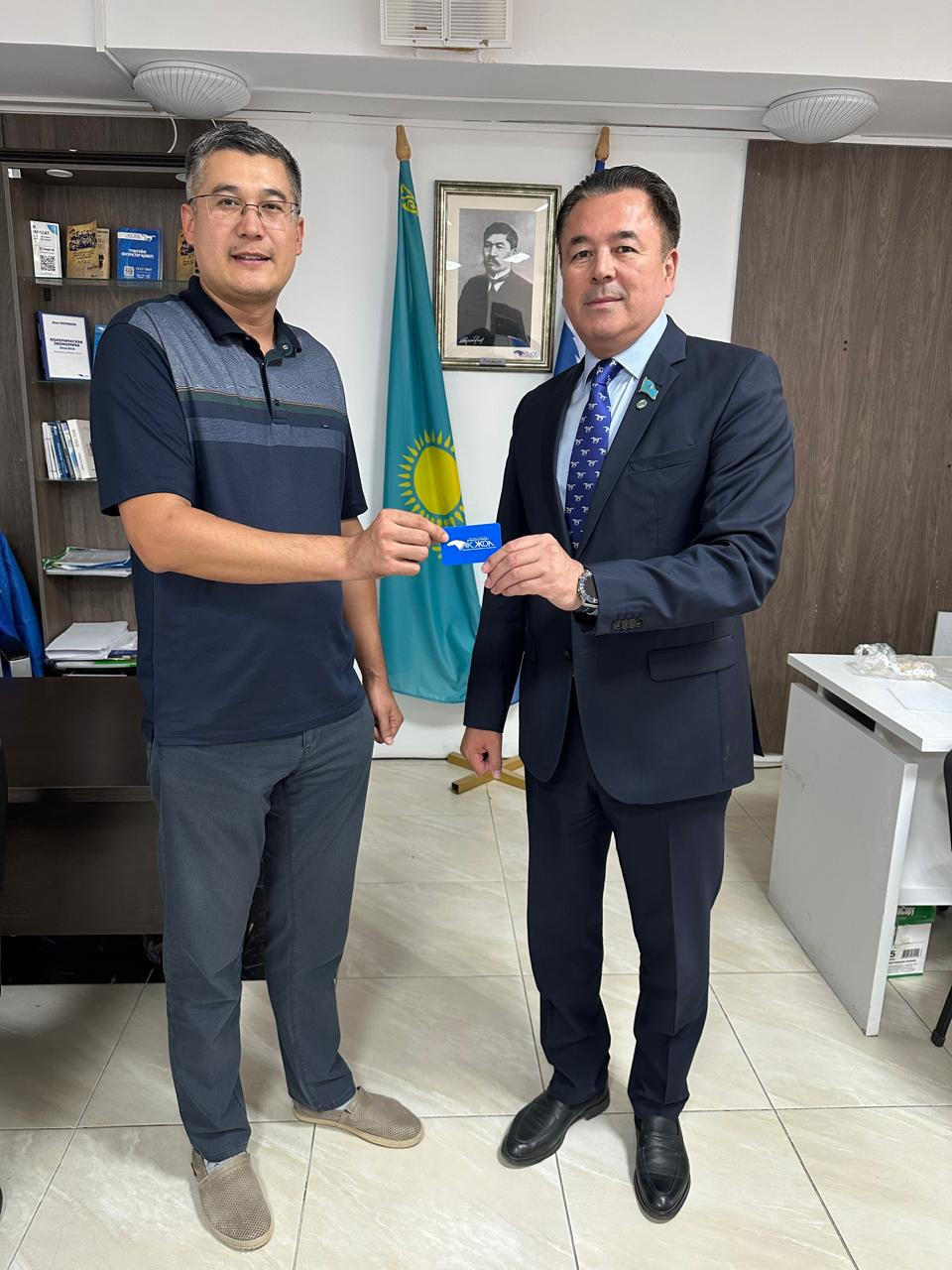 қатарына өткен жеке кәсіпкер Е.Рысбаевқа облыстық филиал төрағасы Б.Сандыбаев