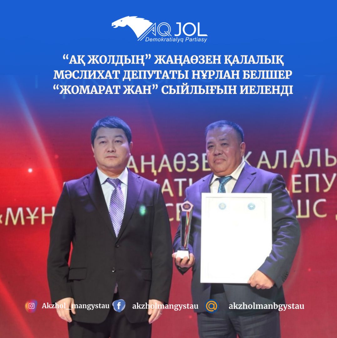 “Ақ жолдың” Жаңаөзен қалалық мәслихат депутаты Нұрлан Белшер «Жомарт жан» сыйлығын иеленді