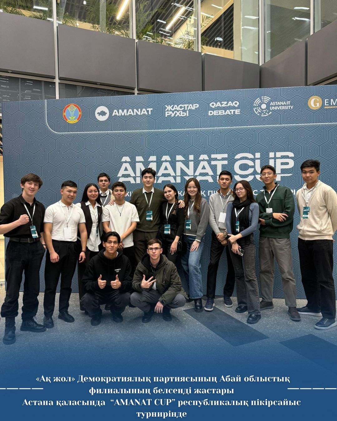 «Ақ жол» партиясының Абай облыстық филиалының белсенді жастары Астана қаласында өткен “AMANAT CUP” республикалық пікірсайыс турнирінде