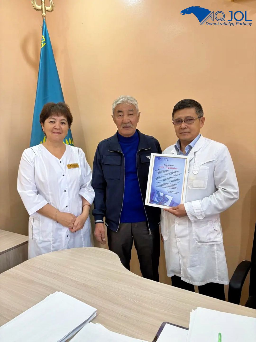 Сексен Сүлейменов Қаражал қалалық ауруханасының бас дәрігері Асан Кабуловты 50 жасқа толған мерейтойымен арнайы құттықтады