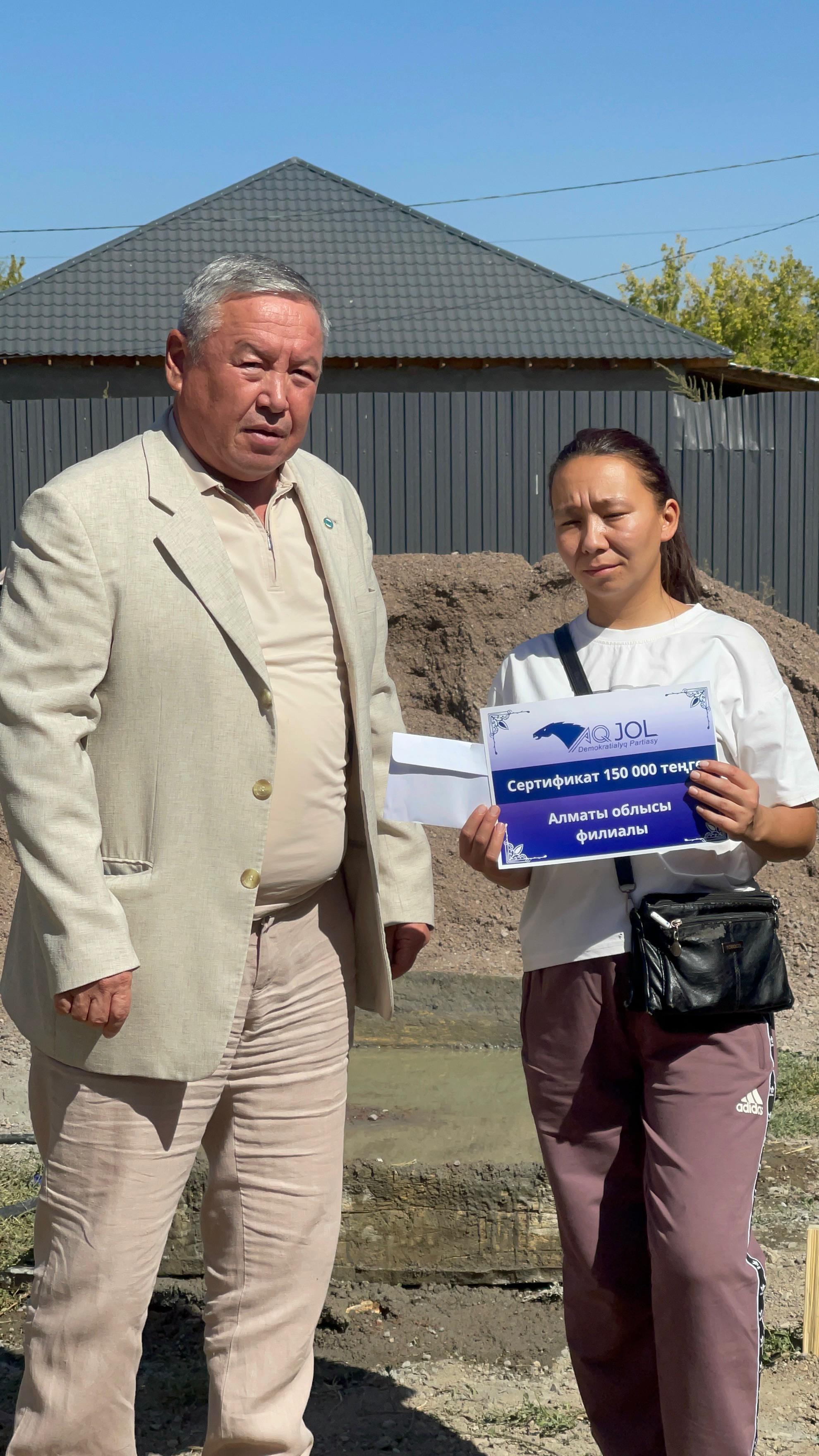 Қарасай ауданында баспанасыз қалған отбасына «Ақ жол» партиясынан көмек берілді