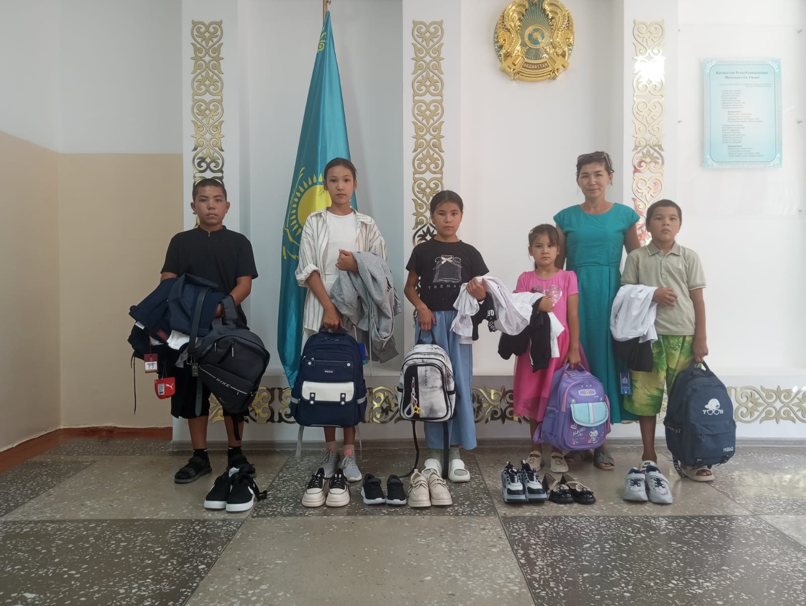 Дәурен Ахметжаев 5 балаға мектеп формаларымен бірге, оқу құралдарын тапсырды