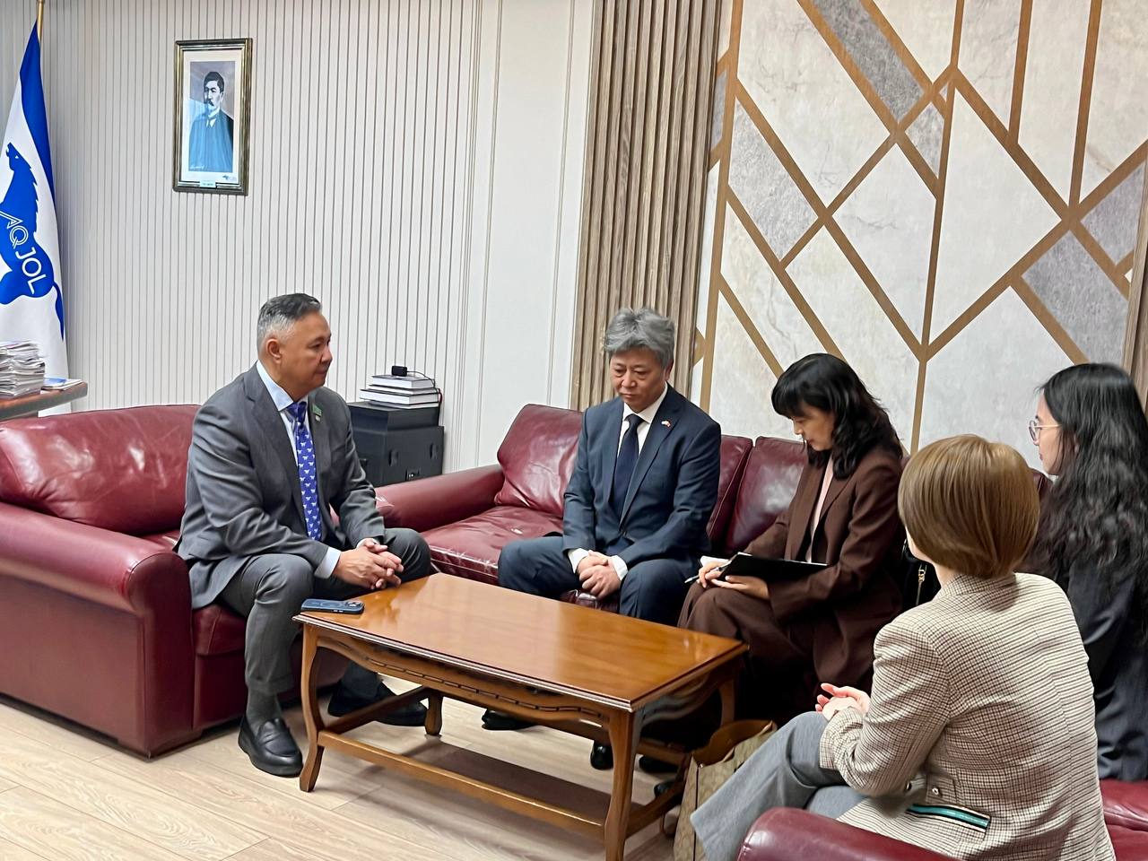 Г-жа Тан Цзинцзе в качестве своего первого шага в должности советника Посольства КНР, передала приглашение бизнес-делегации Демократической партии «Ак жол» посетить Китайскую Народную Республику с деловым визитом до конца текущего года, которое нами с благодарностью принято. Также высказался в поддержку недавнего предложения Международного отдела ЦК КПК о развитии диалога в области женского и молодёжного предпринимательства и регионального сотрудничества.